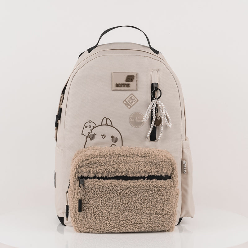 Styl streetwearowy inspirowany licencją Molang, miękka pluszowa kieszeń oraz uroczy brelok sprawiają, że plecak wyróżnia się na tle innych i szybko staje się ulubionym dodatkiem młodej uczennicy.