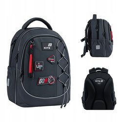 Plecak szkolny ortopedyczny dla chłopców lekki zdrowe plecy szary z naszywkami Kite K26-700M-6