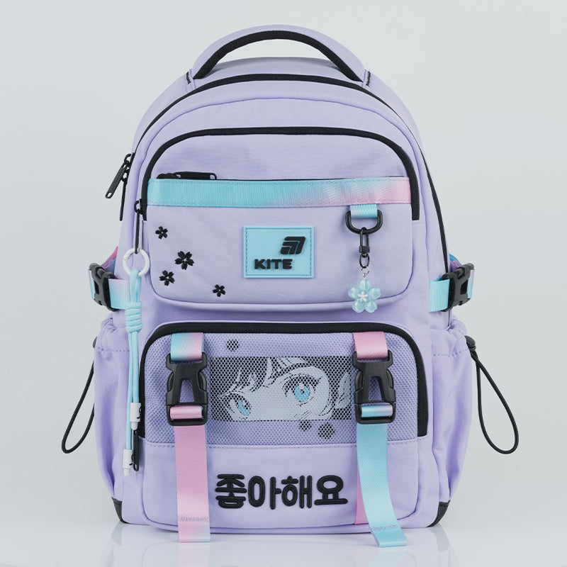 Plecak szkolny ortopedyczny dla dziewczynek jednokomorowy fioletowy z brelokiem Kite K26-1022M-1