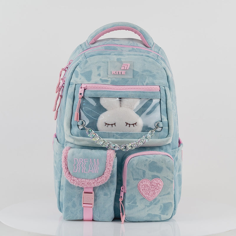 Plecak dla nastolatek do szkoły dla dziewczynek 9-12 lat plecak wielokieszeniowy z przezroczystą kieszenią i zabawką Kite K26-2587M-3
