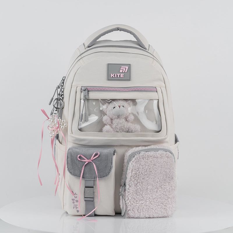 Plecak młodzieżowy do szkoły dla dziewczynek 9-12 lat plecak wielokieszeniowy z zabawką i brelokiem Kite K26-2587M-1